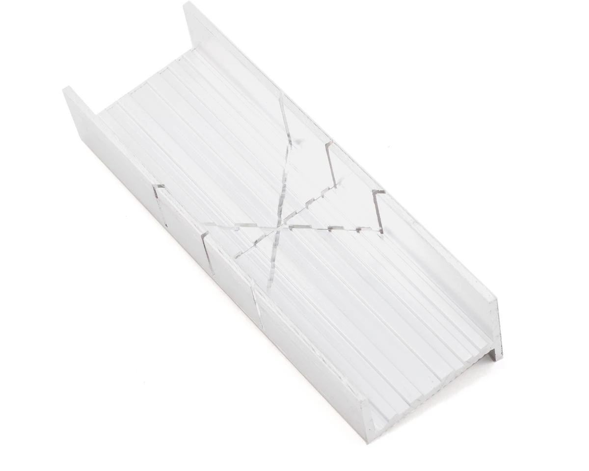 This aluminum mitre box is just 6″ long making it deal for miniature work. Each unit has two 45 degree and one 90 degree angle cutting slots. For use with Excel razor saws.