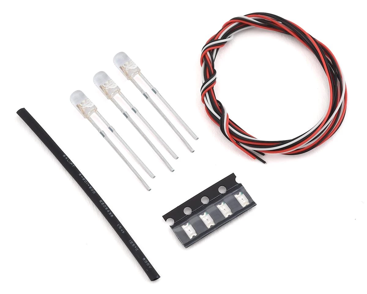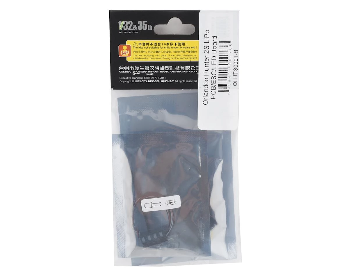 Orlandoo Hunter 2S LiPo PCB/ESC/LED Board. This is the upgraded 2S LiPo compatible control unit for the Wrangler OH35A01, Pajero OH32A02 and F-150 OH35P01 trucks. Package includes the control board, three white LED lights, four chip LED lights, wire, and heat shrink.