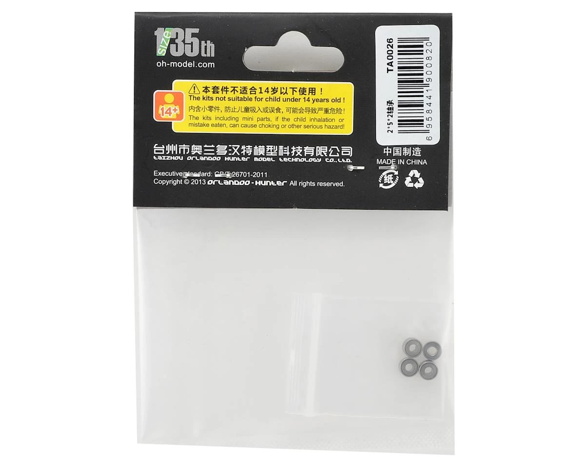 Orlandoo Hunter 35A01 2x5x2mm Bearing Kit. These bearings are used in the 35A01 Jeep kit, to support the driveshafts and pinion gear in the axle assembly. Package includes four bearings.