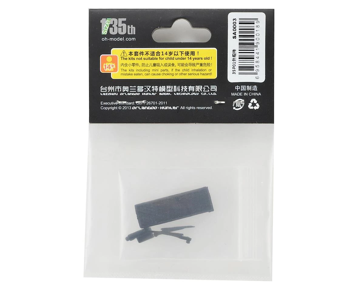 Orlandoo Hunter 35P01 Body Details. Package includes replacement grill, windshield wipers and rear view mirrors used with the Orlandoo 35P01 F-150 kit.
