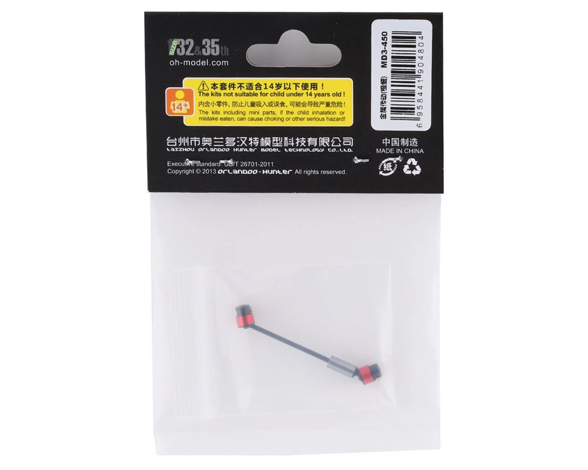 Orlandoo Hunter 45mm Ultrafine Metal Transmission Shaft. This is a machined steel front/center driveshaft upgrade for the 32M01 model. These center driveshafts feature CVD style couplers and a sliding design that allows the shaft to compress/extend from 45-50mm. Package includes one driveshaft.