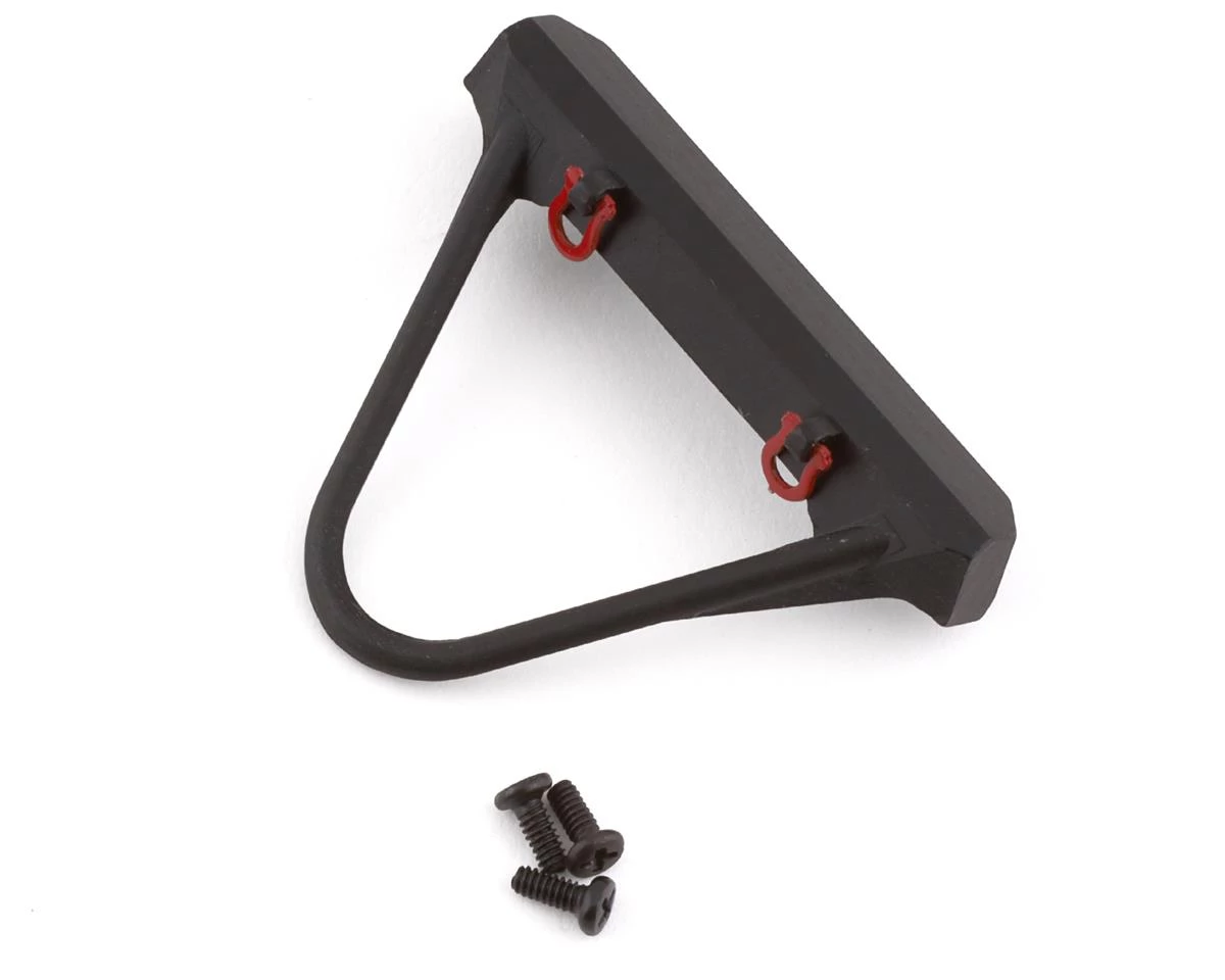 Orlandoo Hunter OH35A01 Metal Stinger Front Bumper with D-Rings. This optional bumper is a great scale accessory that not only looks good but can also help with crawling up obstacles. Package includes one black front bumper with D-rings.